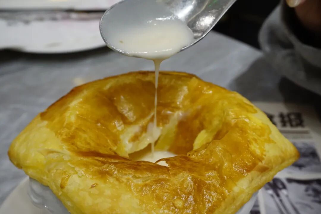 “老克勒”们熟稔地落座,点一份罗宋汤、一客土豆色拉,再加一碗酥皮汤。汤勺轻敲,酥皮应声落进汤里,那股扑鼻而来的浓郁奶香,是上海人味觉记忆中再熟悉不过的“海派西餐”。
