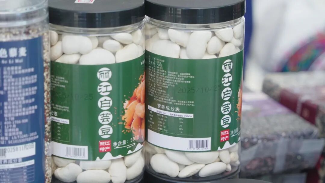 好物展销区内,来自丽江市永胜县的鹿茸菇、姬松茸,产自宁蒗县的糖心苹果、以及来自玉龙县的丽江腊排骨等特色农产品琳琅满目,消费者在各个展位前精挑细选。其中,丽江白芸豆因蛋白质含量高,尤其受到减肥人群的青睐。市民王女士表示,正计划将白芸豆加入减脂餐中,既营养又美观。工作人员李晓甜提醒,白芸豆在烹饪前需浸泡2小时以上,且必须彻底煮熟,以免引起食物中毒。