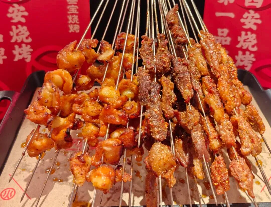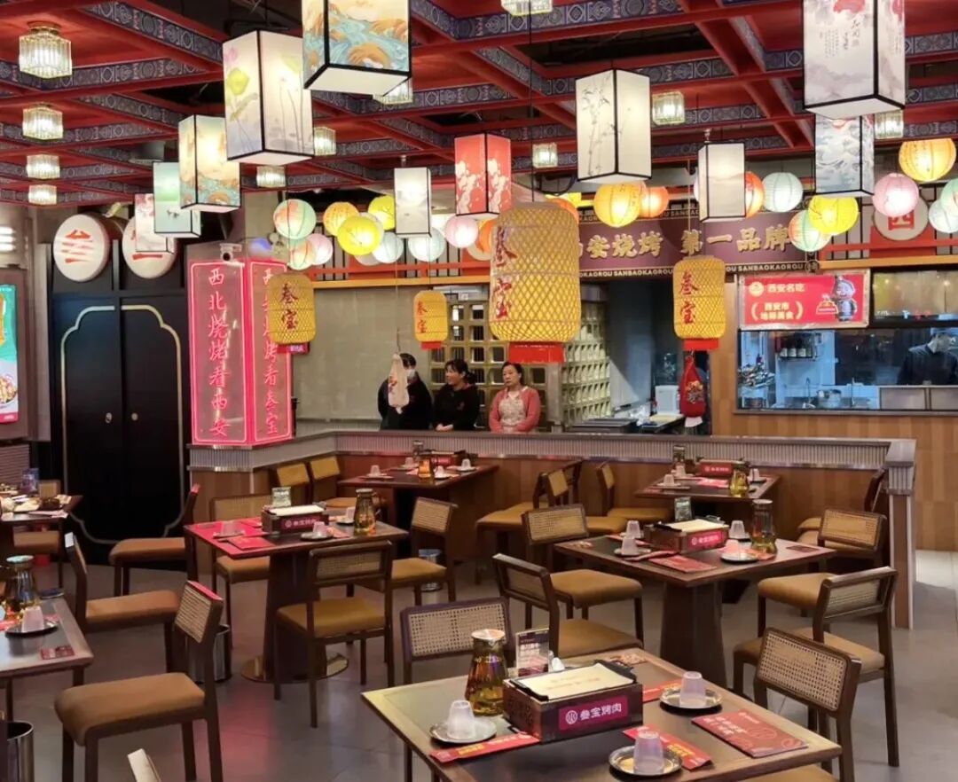“陕西味道真滴撩!”叁宝烧烤带来正宗的西安烤肉风味,这也是该品牌的上海首店,餐厅的装修也花了不少心思,兵马俑、大雁塔、非遗漆扇、传统花灯等元素为店内增添了盛唐气息。