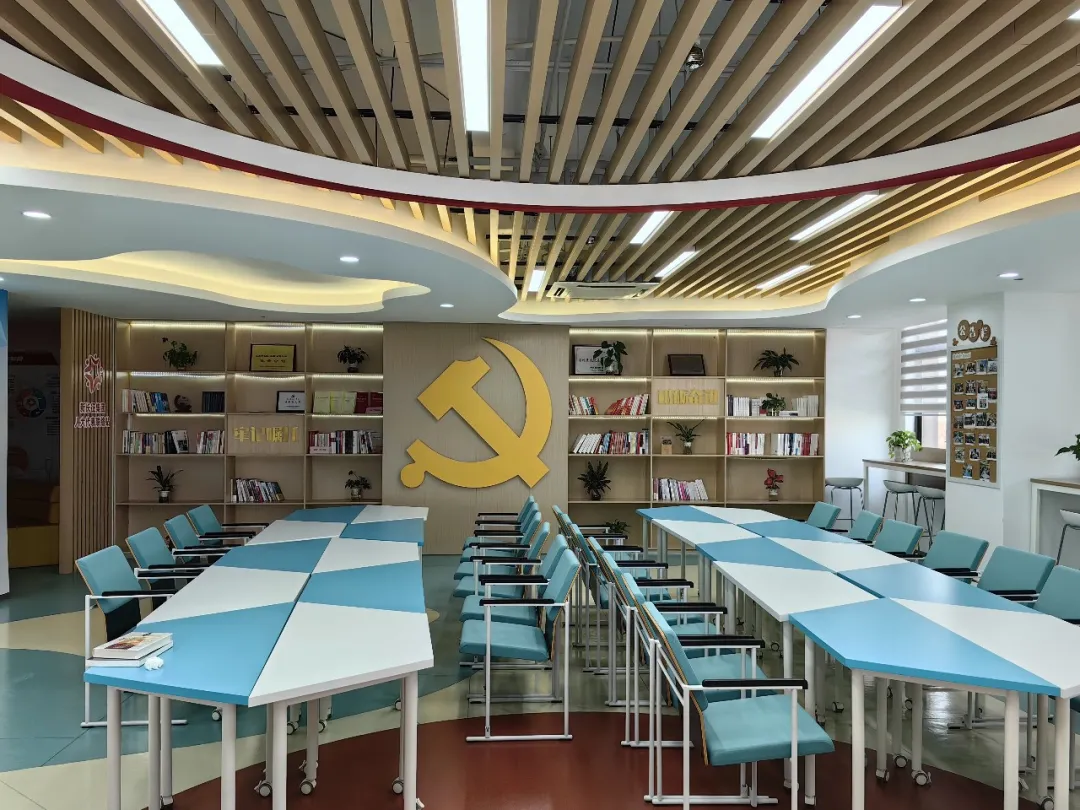 硬件层面,大厦7楼打造的党群活动中心曾承接市、区、镇各级活动,1楼配备书籍与公共空间,向党员和企业员工开放,实现红色阵地从“有形覆盖”到“有效覆盖”的转变。