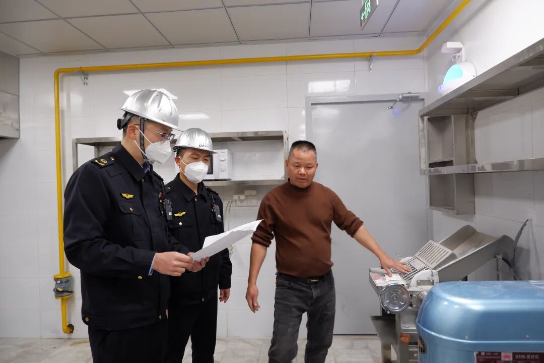 在宝粤楼门店,执法人员对动线流程、就餐区布局、后厨设施进行检查。“前期监管部门就对凉菜间、水槽、冰柜的位置给出专业指导,让我们的装修进度大大加快。”门店相关负责人表示,由于前期准备充分,现场审核顺利通过,食品经营许可证将很快发放到位。