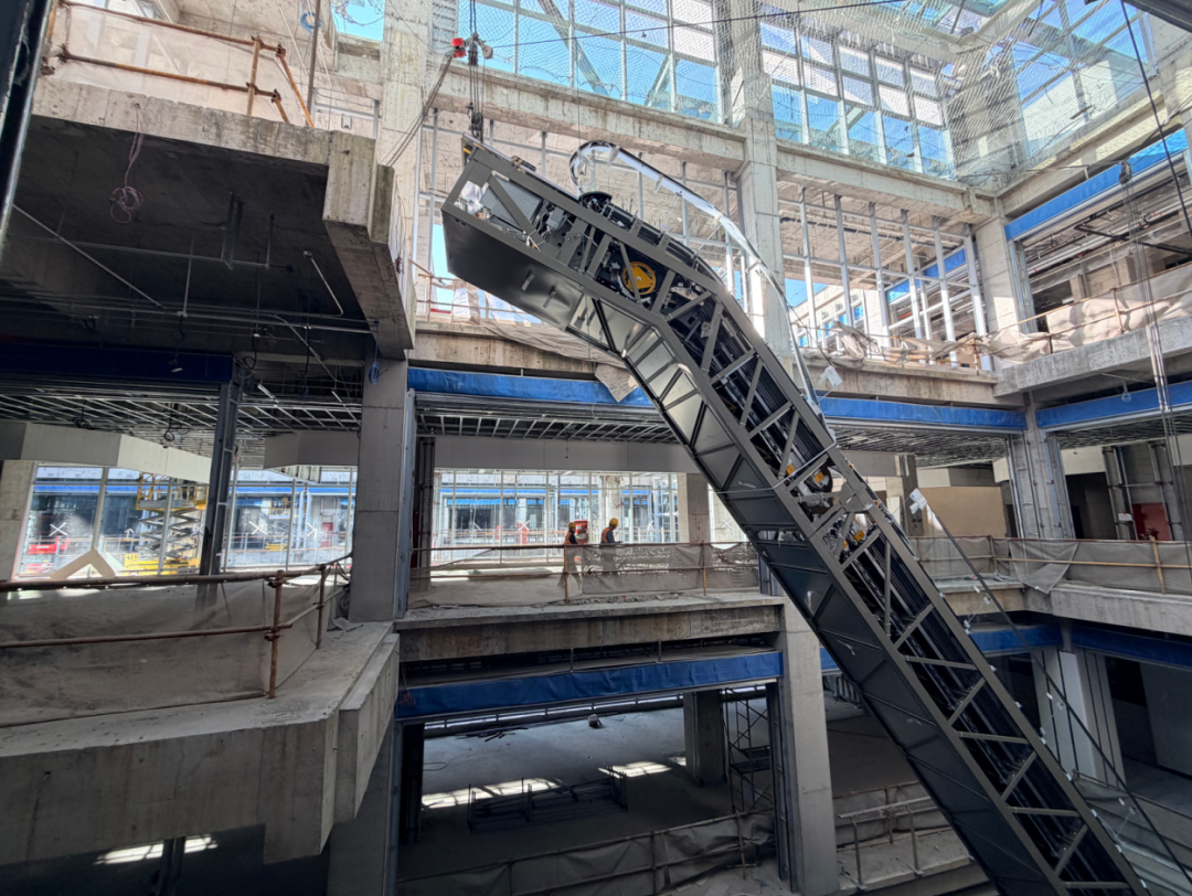 “客梯、货梯、自动扶梯三类电梯进展顺利,通风管道安装也在同步推进。”项目二标段技术负责人陈有幸告诉记者,“接下来,我们还会对自动扶梯侧面、顶部做精装修包覆和造型吊顶,通过优化动线设计,让楼层间的人员流动更方便。”未来,市民可通过这些电梯从地下一层的餐饮区顺畅抵达楼上的商铺。