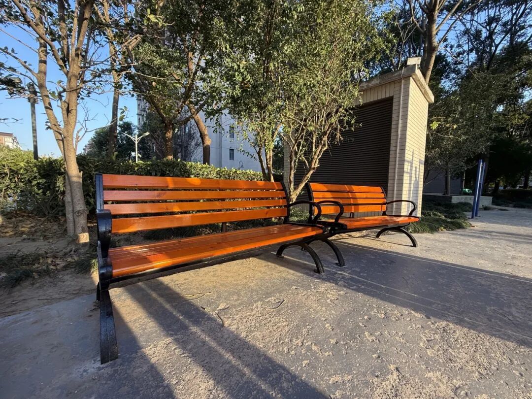 •配套增设4张户外休闲椅,选用防腐耐用的材质,分布在儿童设施周边及广场阴凉处,方便家长看护休憩、邻里交流;