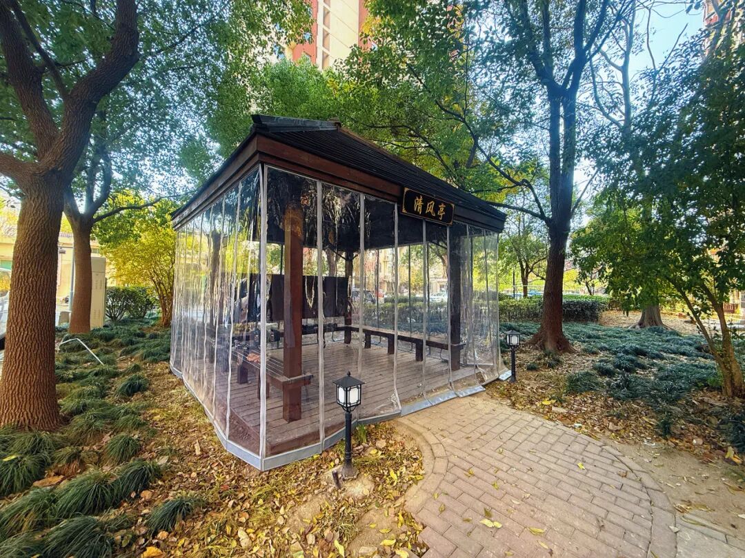 •同步加装透明防水可拆卸防风帘,材质厚实耐用,闭合后能有效阻挡寒风,同时不遮挡采光,让居民在不同季节都能安心休息。