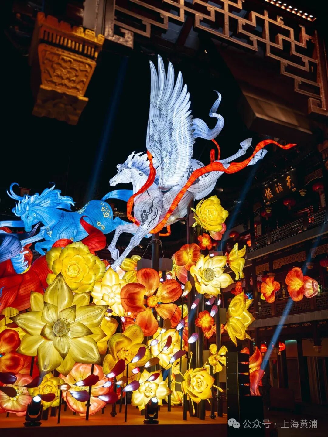 其中,豫园民俗艺术灯区推出《山海奇豫记》第四季《旷野篇》,以“以梦为马,旷野生花”为主题,融合非遗灯彩与数智光影。