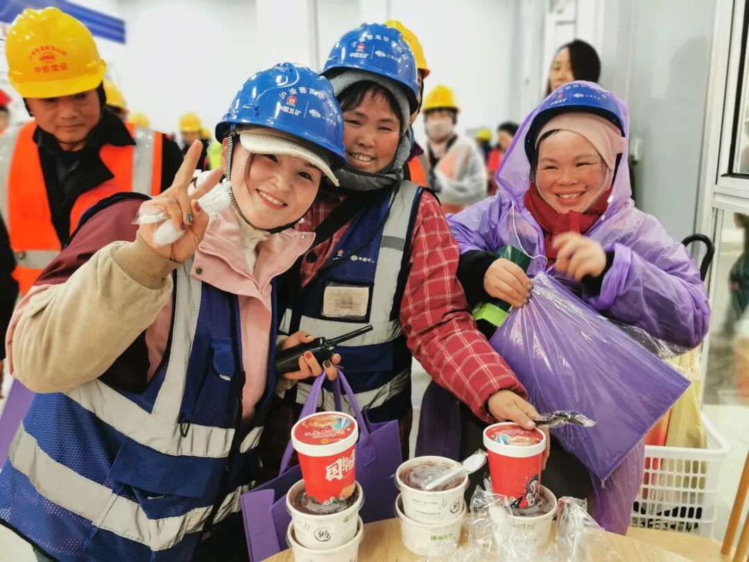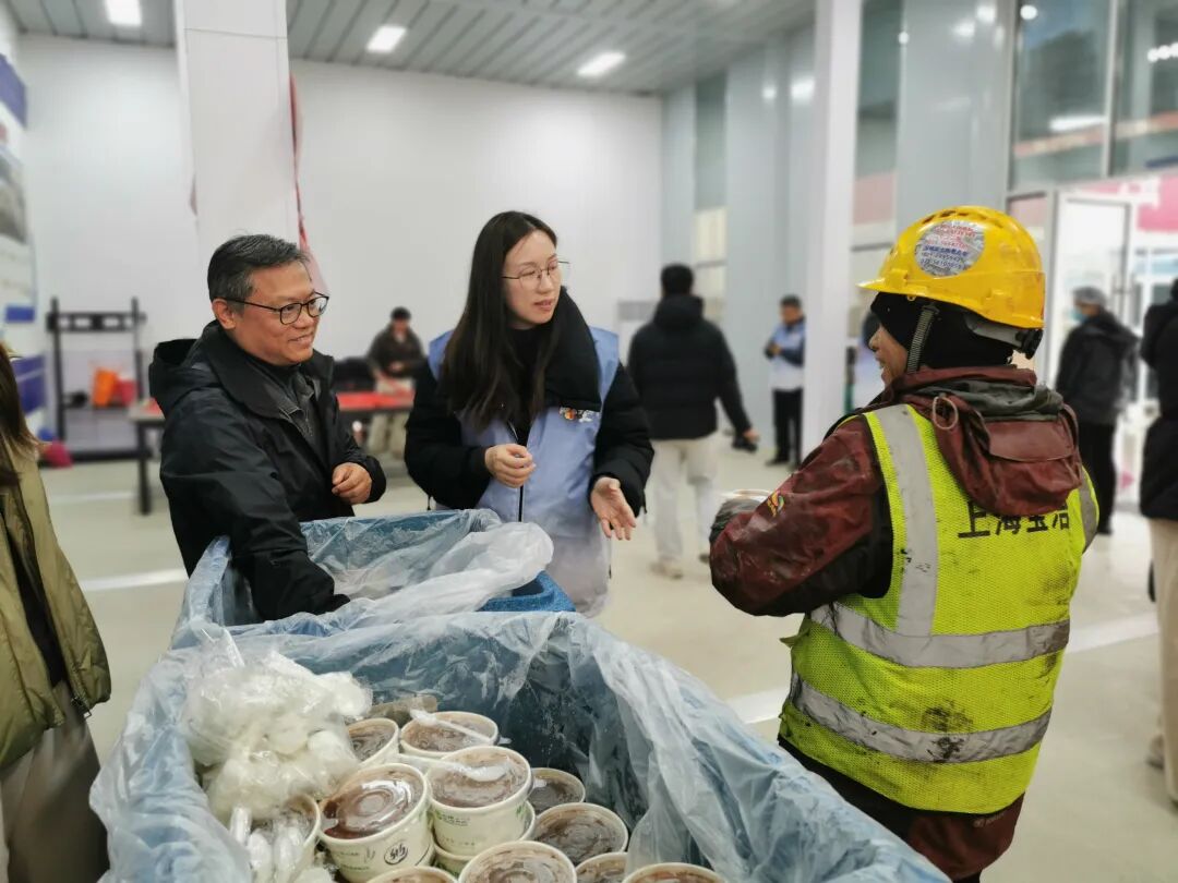 上海合德食品有限公司工作人员表示:“腊八节我们特地熬制了五百份腊八粥,致敬寒冬坚守在现场的一线建设者。祝咱们坚守在现场的一线建设者腊八安康,祝我们高铁宝山站建设顺顺利利、早日落成!”
