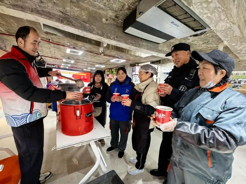 一大早,吴淞一纺居民区的一个小区里热热闹闹,一碗碗冒着热气、透着香甜的腊八粥被盛出来,递给了前来品尝的居民和企业员工。暖暖身子,驱散寒气,在温暖香甜的体验中迎接马年新春的到来,这就是腊八节应有的“体感”。