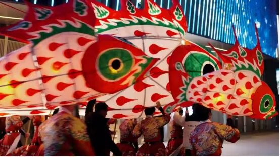非遗市集、英歌舞、火把舞、滚灯舞、财神巡游、皮影戏、脱口秀夜场在上海·海上世界“流光瑞境”轮番上演;元宵夜,鱼灯主题巡游压轴登场。长滩音乐厅“水晶宫”内,江畔新春音乐会奏响;2月20—21日,巨型风筝腾空而起,寓意“筝筝”日上。休闲体育嘉年华设置投篮、平衡车、滑板、九子游戏擂台,让“动起来”成为新年俗。