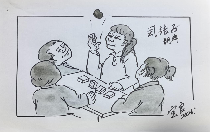 厾结子:结子就是小沙包,桌上一般放四个麻将牌,先将沙包往上抛,利用其落下的间隙,快速将麻将牌逐个竖起,然后接住沙包,再抛起,再换方向翻牌。接不住沙包就算输家。轮换其他人玩!