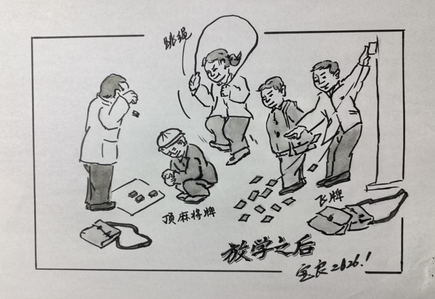 那时候放学后没像现在由家长接送,同学、小朋友大多数还是邻居。经常是一起上学、放学回家。有时功课不多在路上就玩开了,飞香烟牌子、顶麻将牌或橄榄核还有跳绳、踢毽子。有时回家聚一起先做完功课再玩,如扯铃、厾结子什么的都有。这些东西多数是不花钱的,大家就是玩在一起十分开心。