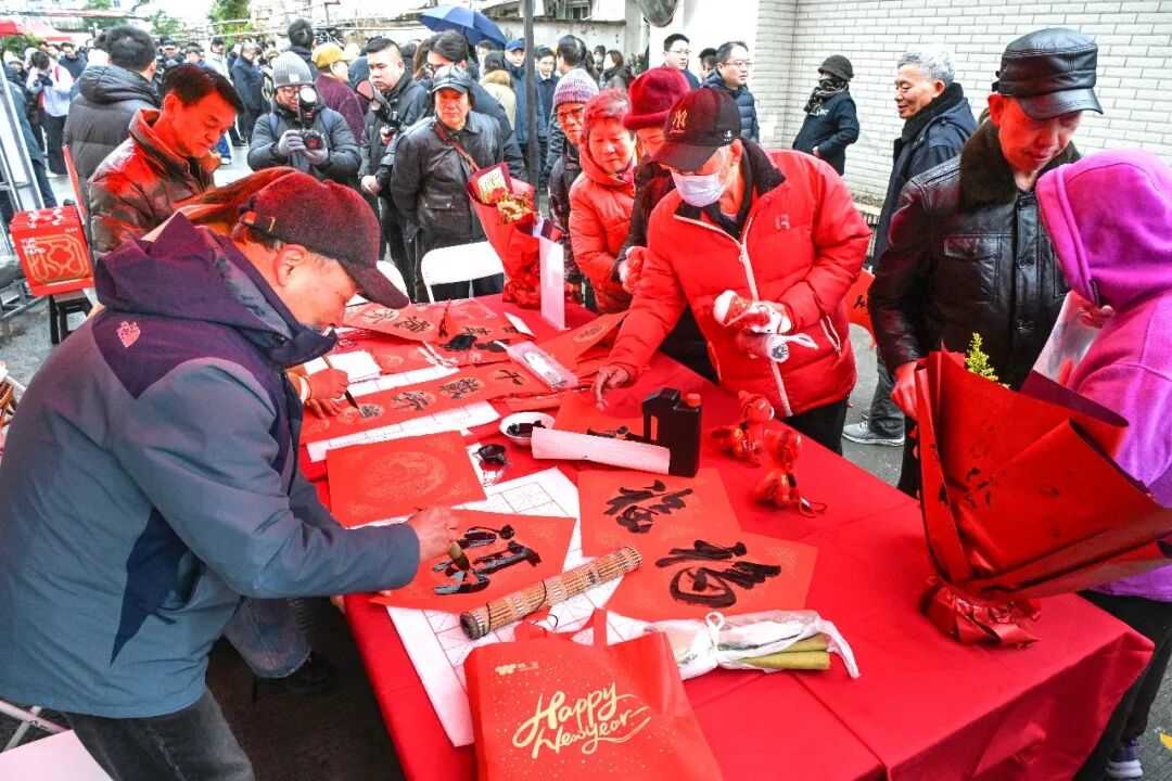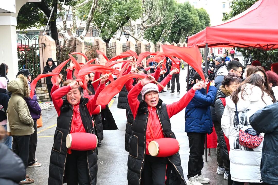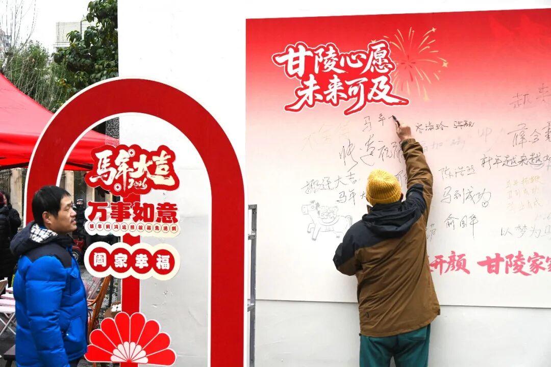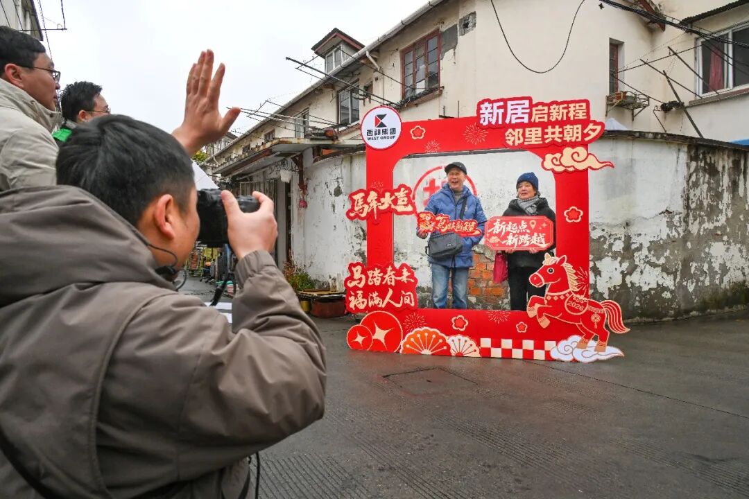 上午9时16分,腰鼓队队员们一袭红衣,手持彩绸,踏着欢快的节奏沿小区主路巡游。铿锵的鼓声,点燃了空气中洋溢的喜悦。不少居民在“社区记忆”背景板前与老邻居合影,一旁的寄语留言板上写满了居民的心声:“期待新家园,迎接新生活”“以梦为马,新年越来越好”……字字句句,承载着对新生活的期待。
