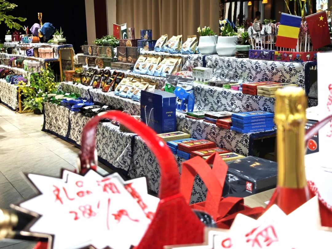 走进环球港五楼的进博市集,宛如踏入了“地球村”——来自法国与澳洲的佳酿香气四溢,南非的坚果与俄罗斯的巧克力引人眼球,新西兰的奶粉罐整齐排列,阿根廷红虾和澳大利亚牛肉新鲜诱人……伊朗的手工地毯、巴基斯坦的玉器、拉丁美洲的手工皮包争奇斗艳,各国特色年货琳琅满目,让人目不暇接。
