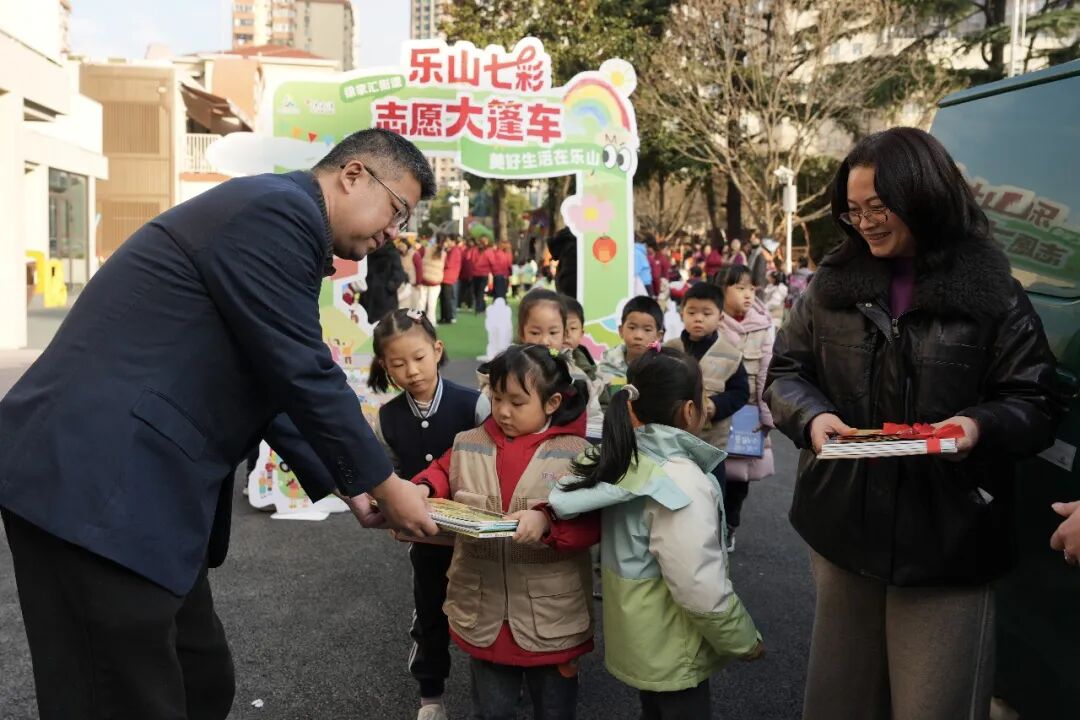 1月28日,经过精心筹备,“乐山七彩志愿大篷车”开进了乐山幼儿园,徐家汇街道“宝贝有爱童享市集”温暖开市。幼儿园孩子化身“小掌柜”,现场摆摊,他们捐出自己的绘本和玩具,用玩具换绘本,再把绘本捐给2000公里外的小伙伴。