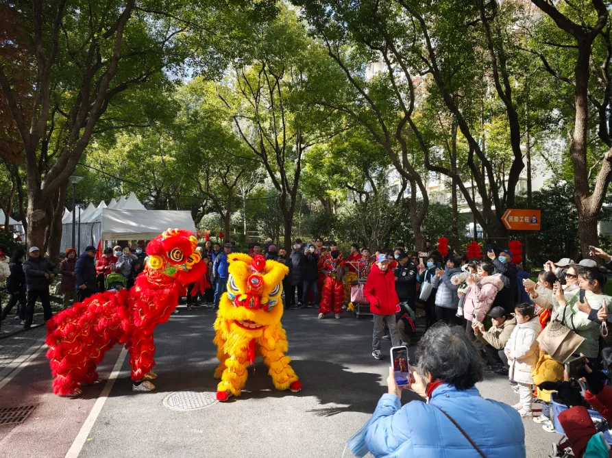 除了琳琅满目的年货,市集现场的非遗表演更是点燃了市民的热情。伴随着欢快的锣鼓声,舞龙舞狮队伍昂首腾跃、灵动跳跃,金黄的龙身、喜庆的狮头,在人群中穿梭舞动,引得市民纷纷拍照留念。