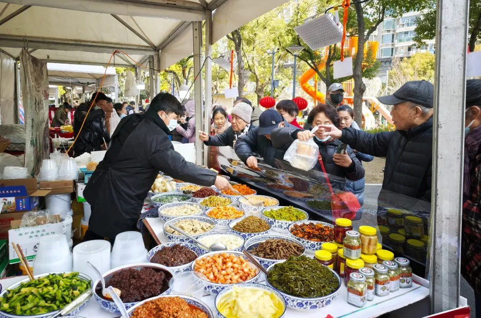 “买了点荞头、笋丝,这家的酱菜味道很不错的!”市民张桂珍熟门熟路地挑选着,“现在好多地方都没有品类这么丰富的酱菜了,这里还能当场尝,太方便了,价格方面也蛮实惠。”