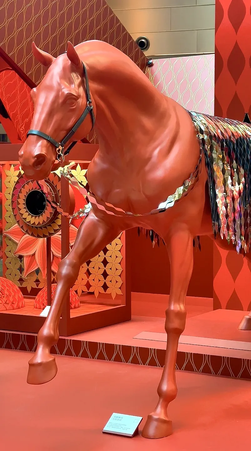 除了这些引人注目的大型装置,商场内各商铺也通过巧妙布置传递新春喜悦。各品牌纷纷以展板、贴纸、毛绒玩具等形式呈现马的形象,或飞驰奔腾尽显昂扬姿态,或萌趣可爱戳中童心,让整个商场都浸满了新年的鲜活气息。不少品牌更结合自身特色,推出满满心意的马年系列产品:精致的金马摆件、香甜的马形巧克力、小巧的马形冰箱贴……各式好物琳琅满目,既寄托着新年的美好寓意,也为新春选购增添了不少惊喜。