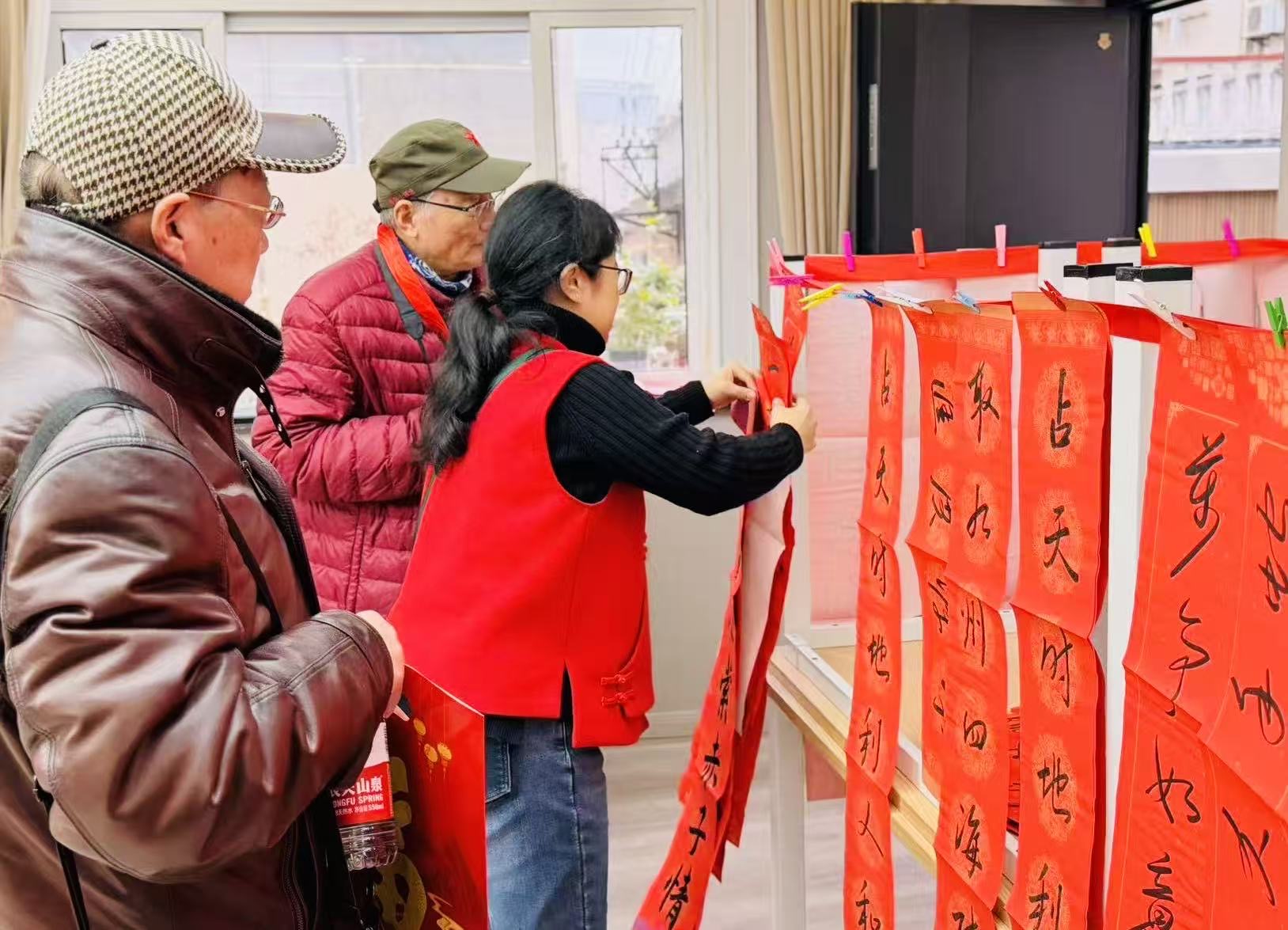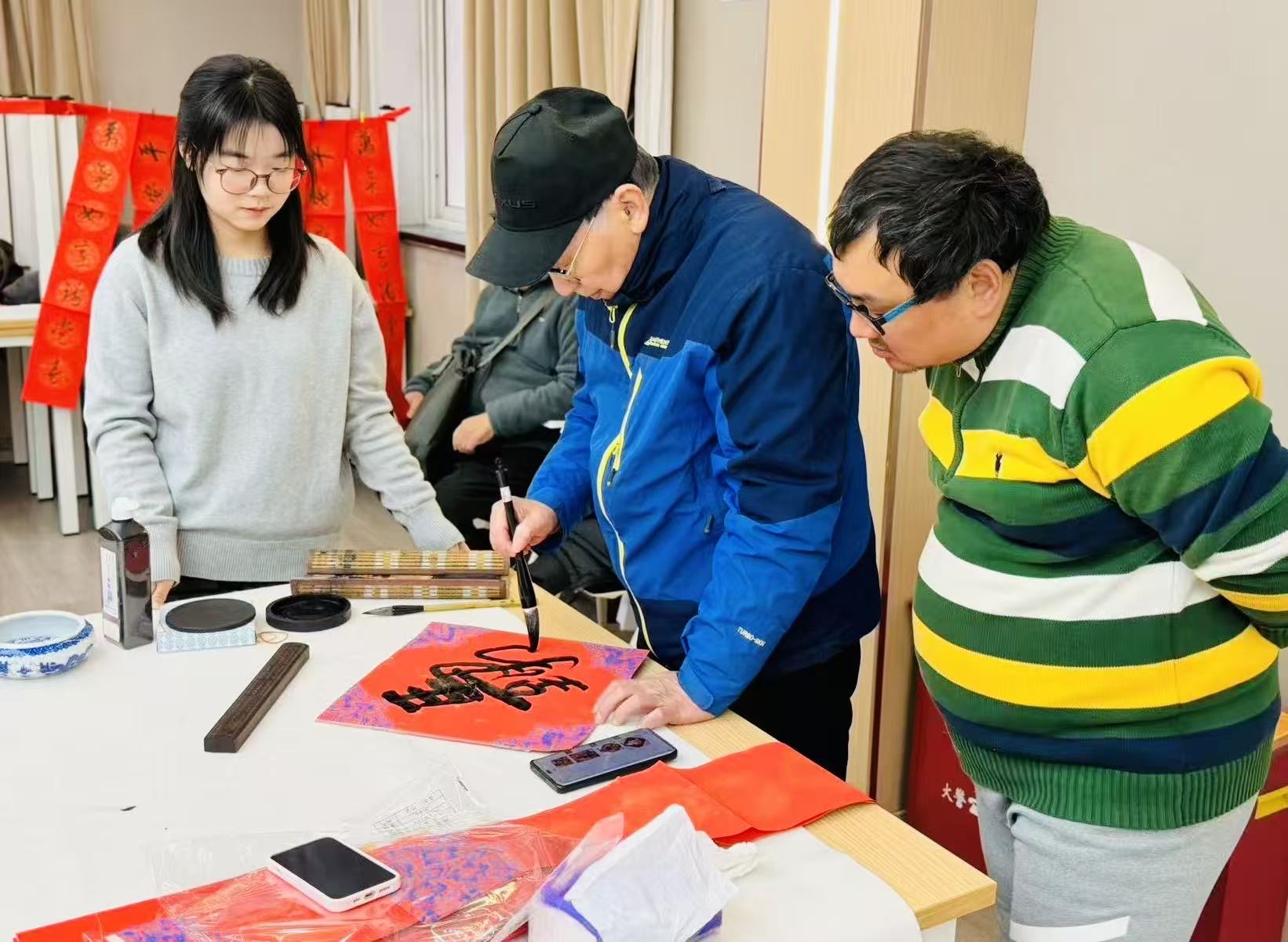 活动现场,墨香四溢,虹口区文化馆的书法家们与残疾人书法爱好者同台挥毫,即兴创作、书写“福”字与春联。一幅幅寓意吉祥的作品在现场完成,并赠予到场的残疾人们,将真诚的祝福融入笔墨,用传统年味传递温暖关怀。
