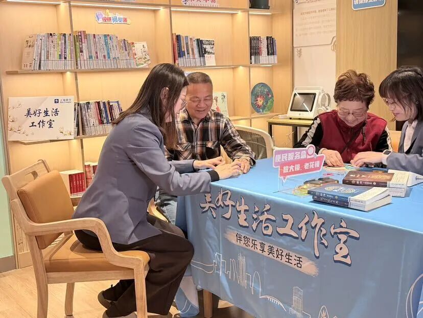 境享公益集市还为老年人提供日间照料服务、适老化微改造服务、“黄袖套”家政服务,开放数字中医养生馆、长者学堂、银龄书屋等,让老年生活不仅“老有所养”,更“老有所享”,在家门口就能拥抱智慧、温情、舒心的晚年。记者发现,就在镜享社区食堂一旁的日间护理中心里,上海银行也会定期开展“美好生活工作室”公益活动。“上海银行和我们宝山民政也共同合作,把‘美好生活工作室’落地在宝山各个社区微日托场所。经常会有一些互动的环节,比如老年课堂,长者学社等活动。让老年人用完餐后还能叠加娱乐活动,精神上得到愉悦,旨在让老人觉得每天的生活充实又满足。”