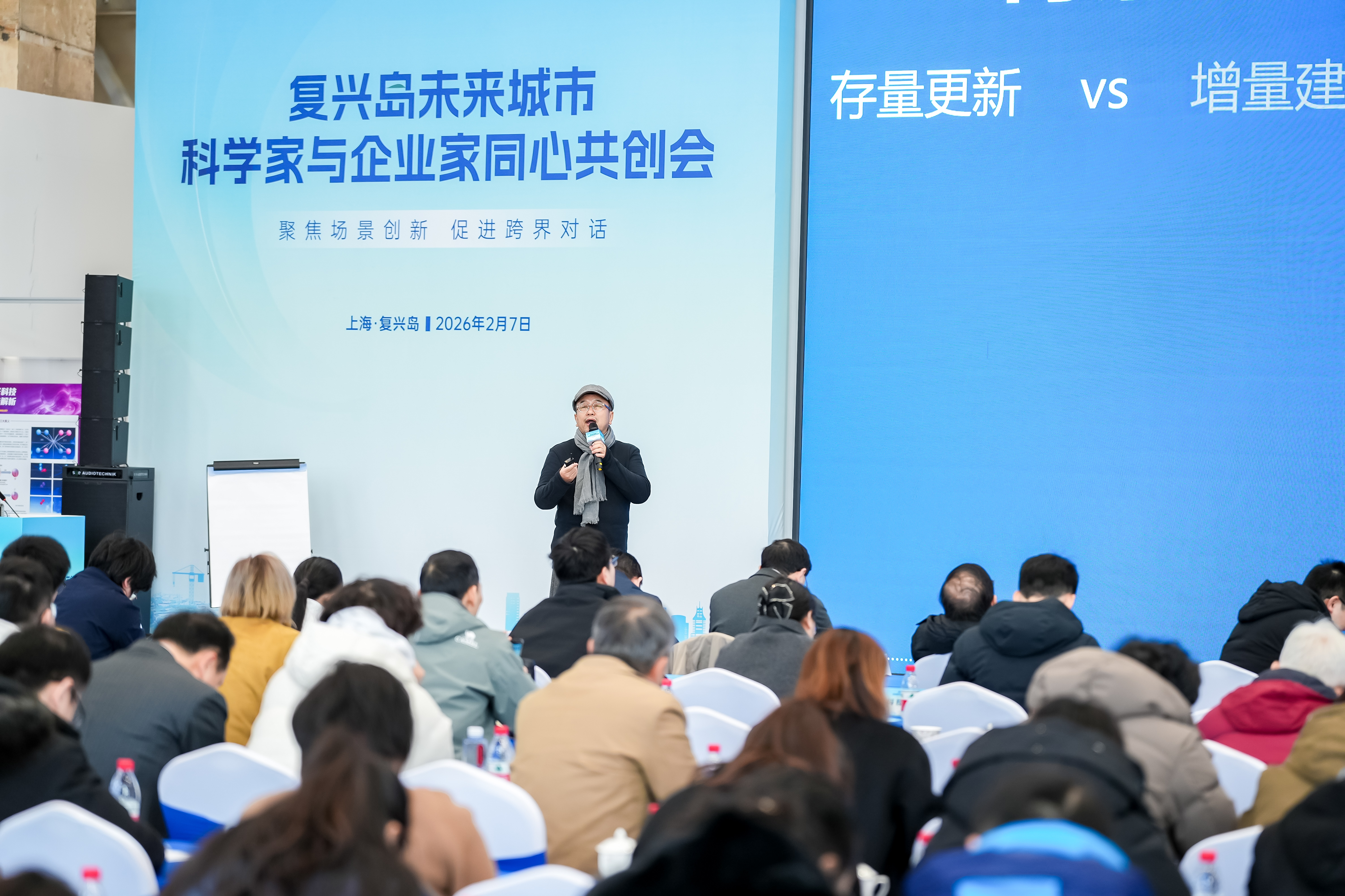 春寒料峭,挡不住复兴岛上思想碰撞的火花。2026年2月7日,船台公园复兴云厅内,以“复兴岛未来城市”为主题的科学家与企业家同心共创会在此拉开帷幕。市委统战部副部长张峰,中国工程院院士朱合华,上海师范大学校长陈恒,杨浦区委常委、统战部部长董鑫旺等莅临现场。与会的,还有各领域专家学者、企业家代表,以及通过线上报名而来的各界人士,济济一堂,思维的火花在江风与创意中隐隐跃动。