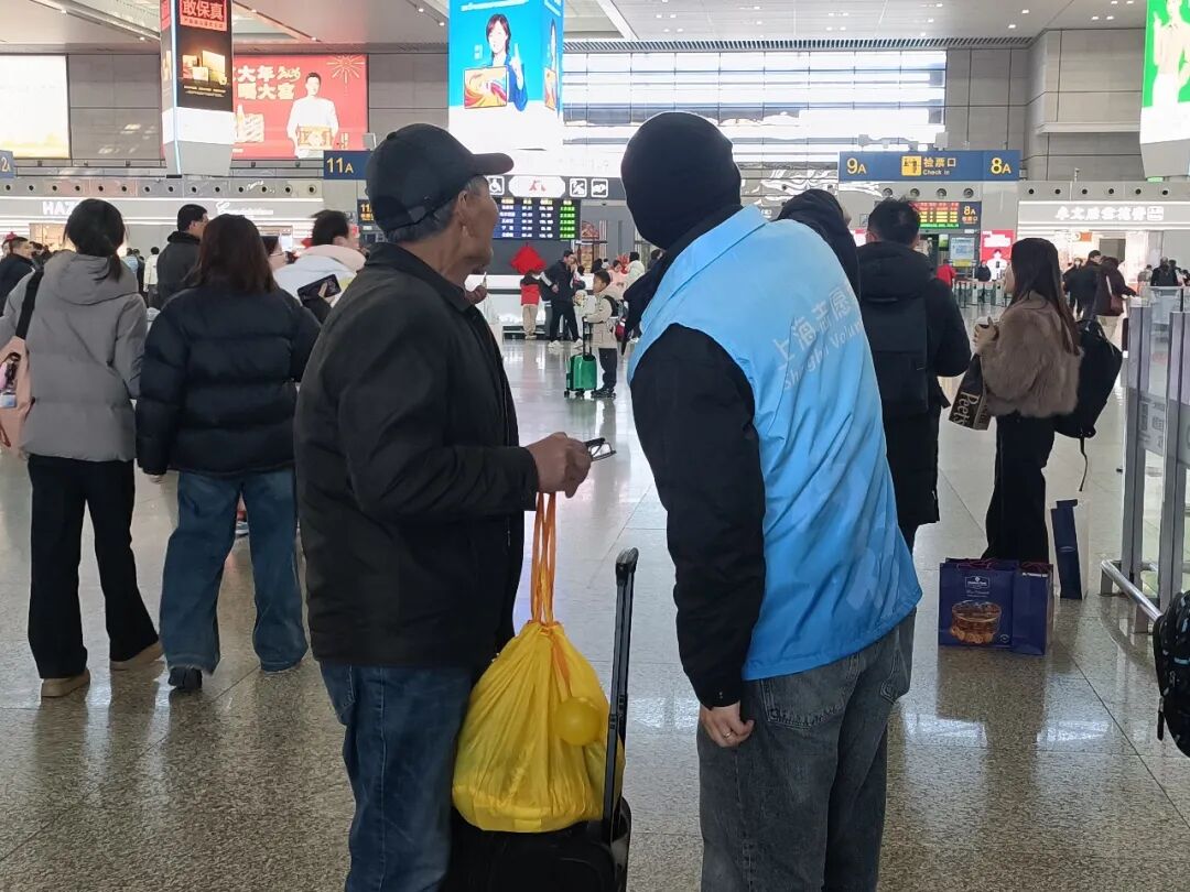 志愿者们做的,或许都是些微不足道的小事:一次热点分享、一句路线指引、一个紧急建议、一把行李帮扶。但正是这些看似平凡的举动,像点点微光,在人潮中汇聚成一股暖流,化解了旅客的燃眉之急,也让漫长的归途多了一份顺畅与安心。
