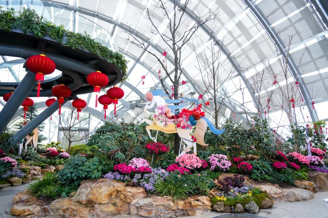 2026上海植物园年宵花展启幕,四座温室绘就花马迎春盛景