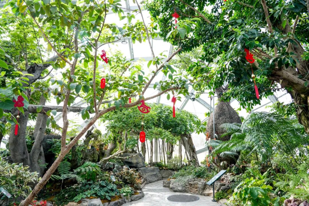 热带植物馆汇聚了各类寓意吉祥的年宵花卉,成为新春赏花的绝佳去处。这里以彩色马蹄莲为主体花卉,搭配大花蕙兰、蝴蝶兰、北美冬青、牡丹等热门年宵花品种,各色花卉竞相绽放、争奇斗艳,温暖的场馆环境与红火的花卉景致相得益彰,让步入其中的游客,都能直观感受到新春的吉祥与喜庆。