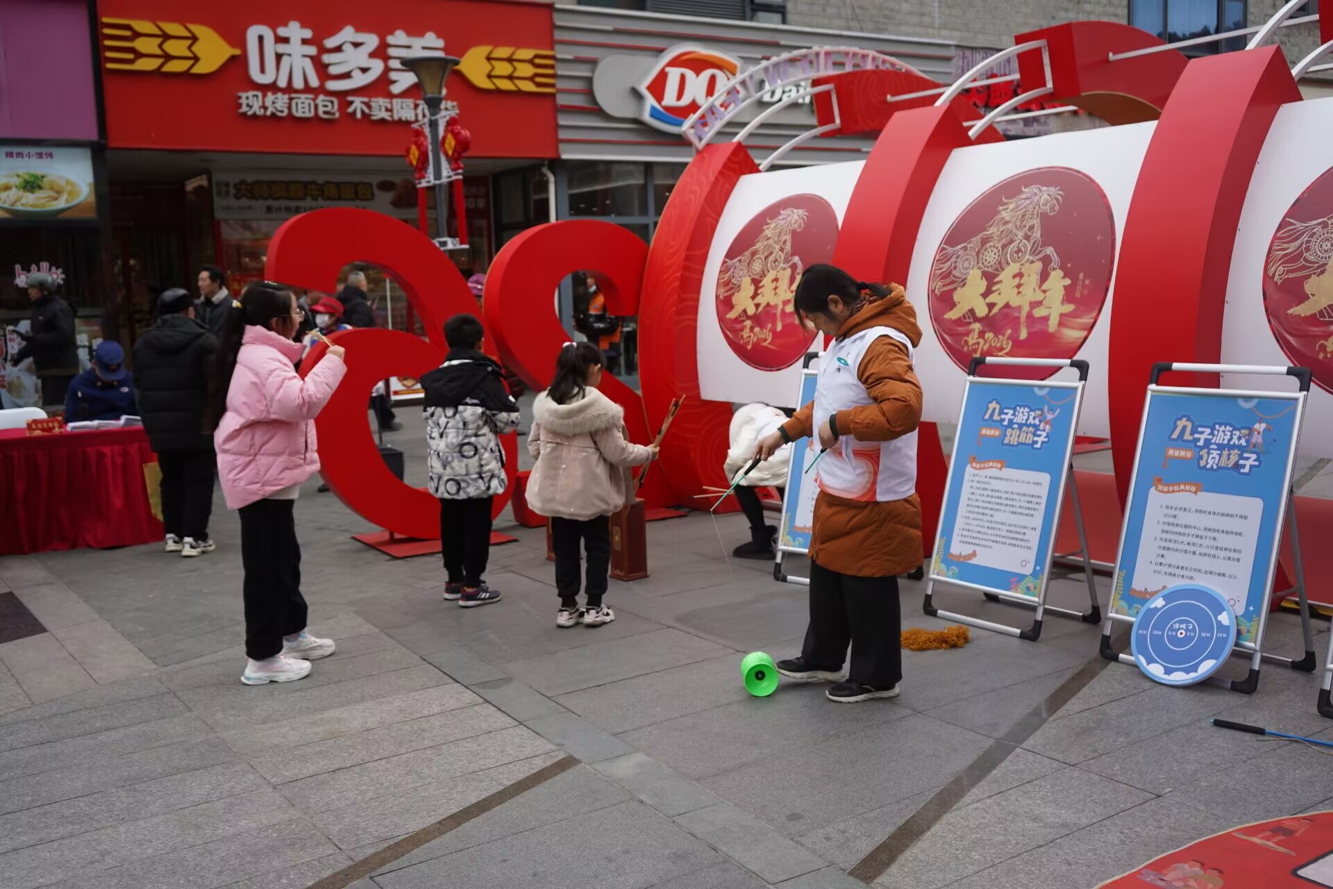 活动现场特别设置了四大体验专区,让市民在互动中感受浓浓年味。“民俗嬉春”区内,剪纸、捏面人、糖画等非遗项目吸引众多市民驻足体验,书法爱好者现场挥毫送“福”;“年货品春”区集结优质商户,方便居民选购节日商品;“亲子闹春”区通过投壶等传统游戏增进家庭情感;“名医护春”区则为居民提供健康咨询与义诊服务,传递关怀与温暖。带着孩子前来参与活动的张女士表示:“在家门口就能体验到这么丰富的年俗活动,孩子开心,我们也感受到了真正的年味。”