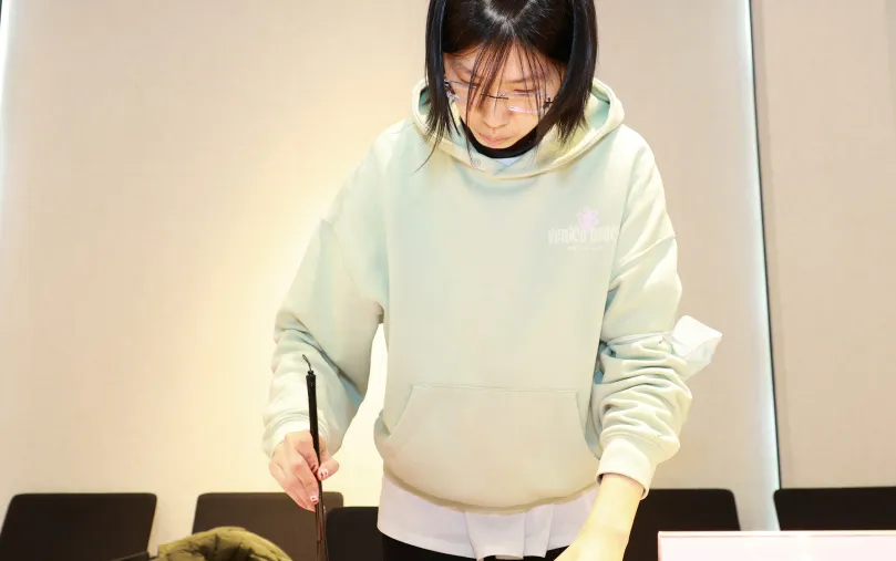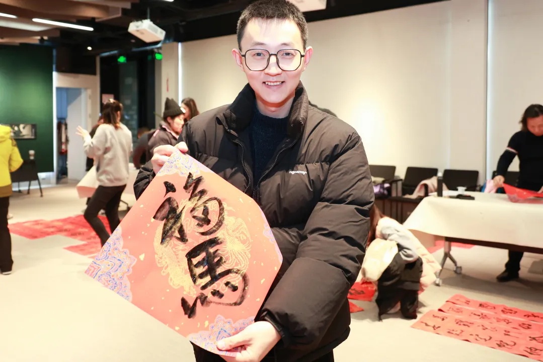 活动中,来自小红书、得物等企业的白领们齐聚一堂,有的专程来为自己申领这份特别的“文化年货”,有的则为团队办公室定制春联,欢笑间满是对新年的憧憬。现场洋溢着宁静而浓厚的氛围,让参与者都能在笔墨流转间暂享闲暇。