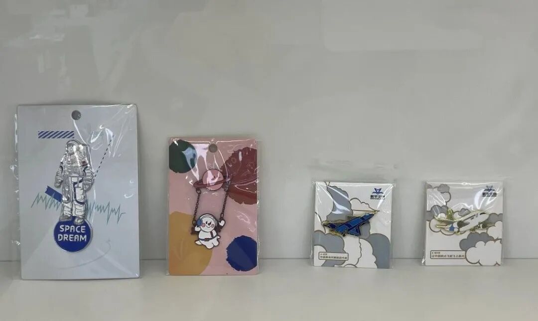 店内陈列着航空航天主题文创产品,灵感来源于歼击机、客机、火箭乃至中心建筑本身。