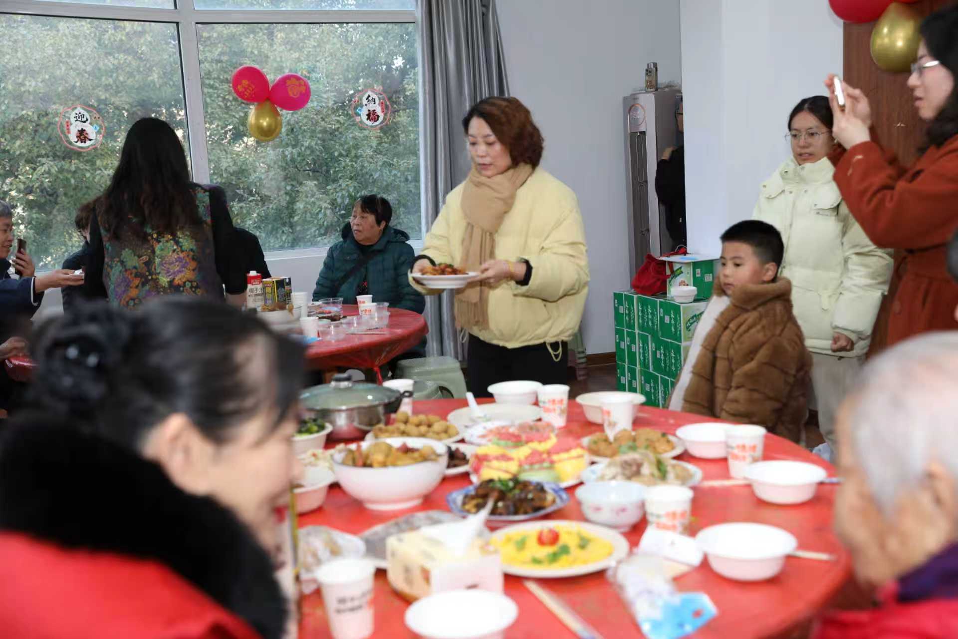 老年居民金祝生说,我第一时间把这一大桌的盛宴拍下来发给了孩子。“孩子看了就放心了,他们都直竖大拇指,说这桌年夜饭真好!我感觉能参加这样的活动太温暖了,每道菜都很好吃,很适合我们老年人。”
