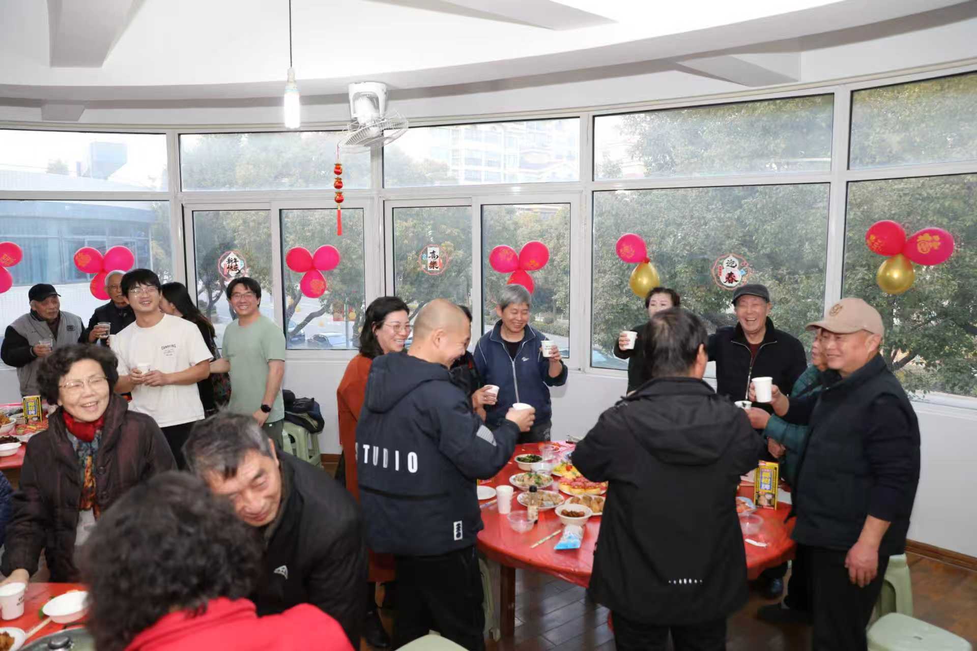 “新年快乐!”现场气氛火热,大家举杯同庆。老人们围坐一起,一边品尝着熟悉的家常美味,一边聊起家长里短,分享着过去一年的点点滴滴。