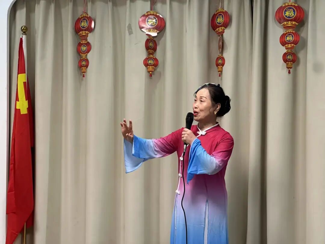 在华东二居民区,新春的序曲则在一支活力四射的集体舞中奏响。居委会工作人员用热情的舞步,为居民送上最直接的新年祝福,也点燃了整场春节汇演的氛围。随后,居民自编自演的节目接连亮相:温柔的合唱唱出思念与乡情,独唱里流淌着对家国、对生活的深情;沪剧、黄梅戏把老上海的乡韵与经典戏曲的魅力带到社区舞台;《灯火里的中国》《好人好梦》《好运来》等熟悉旋律,引得观众轻声跟唱。台上用心演绎,台下会心一笑,邻里之间的距离在一曲曲歌声中悄然拉近。汇演在合唱《闪亮的日子》中落幕,温馨的旋律里,满是对当下生活的珍惜和对新年的期待。