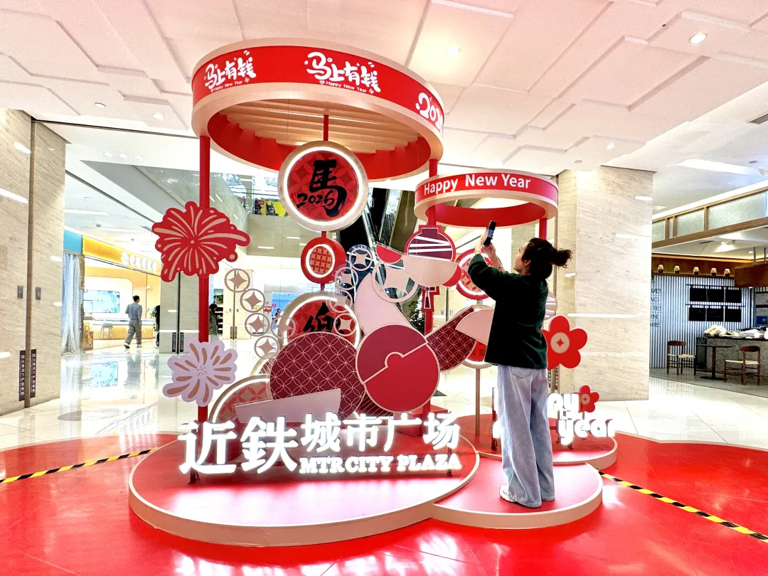 马年新春脚步渐近,普陀区近铁城市广场以创意美陈营造浓厚新春氛围,更推出重磅团购福利,让市民在打卡吉祥景致的同时,尽享舌尖上的实惠,成为普陀商圈内年味与烟火气交织的热门打卡地。