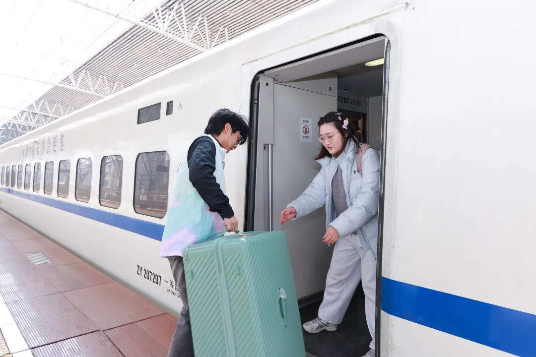 “这边布置得喜庆、隆重,真有年味。”旅客赵资立说。他的身后,打卡点又排起了小队,旅客举着福字,对着镜头比出“耶”的手势。