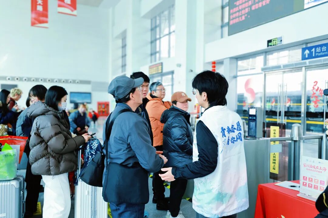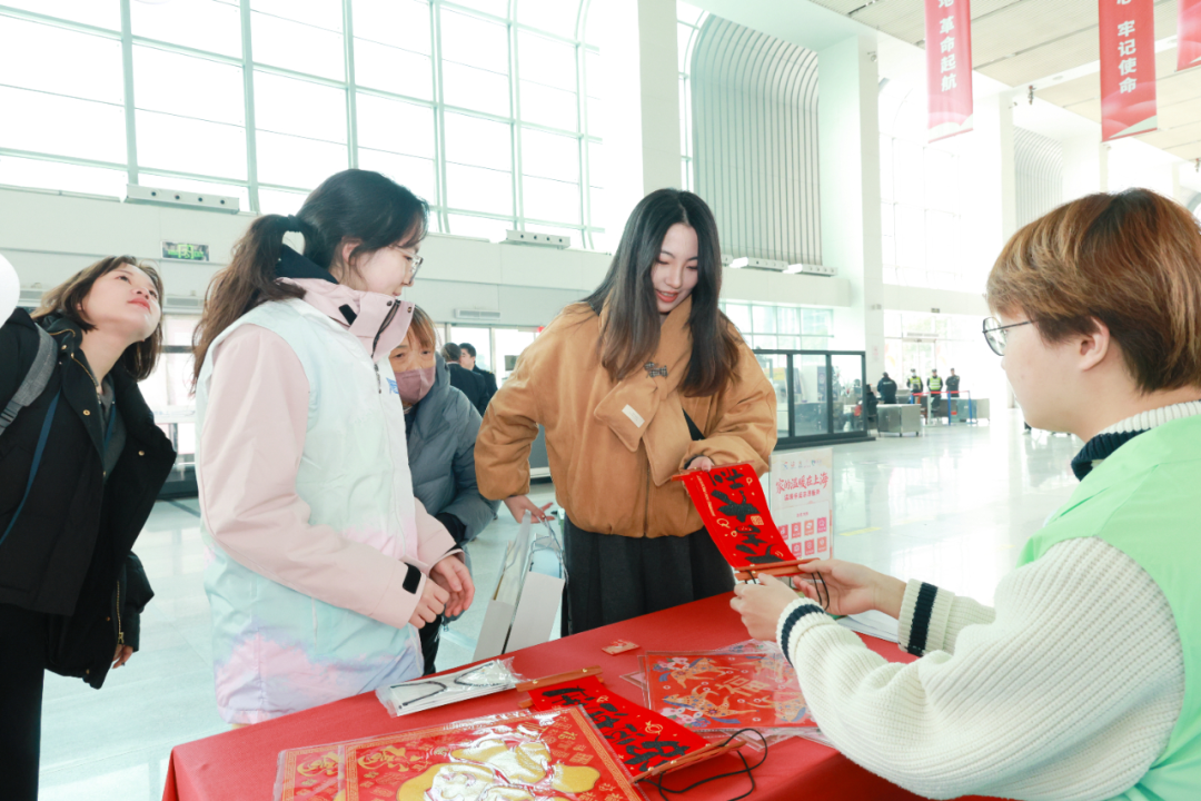 上海西站里有个“年味客厅”,志愿者把温暖装进旅客行囊