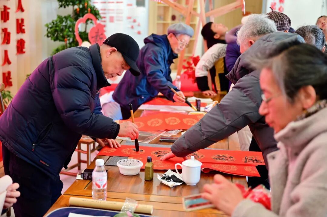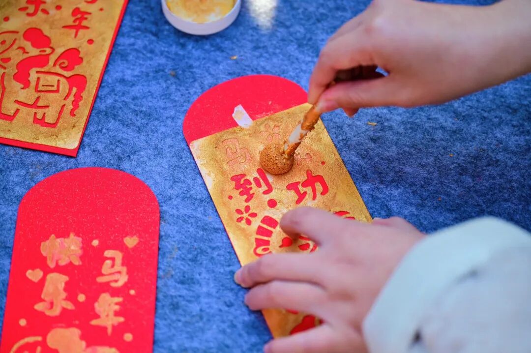AI热潮未退,各摊位已人气满满。糖画师傅手腕轻转,糖稀化作栩栩如生的骏马;巧手绳结将小马编入吉祥结,寄托新年心愿;“墨香送福”前长队蜿蜒,书法老师现场挥毫,福字春联供不应求。