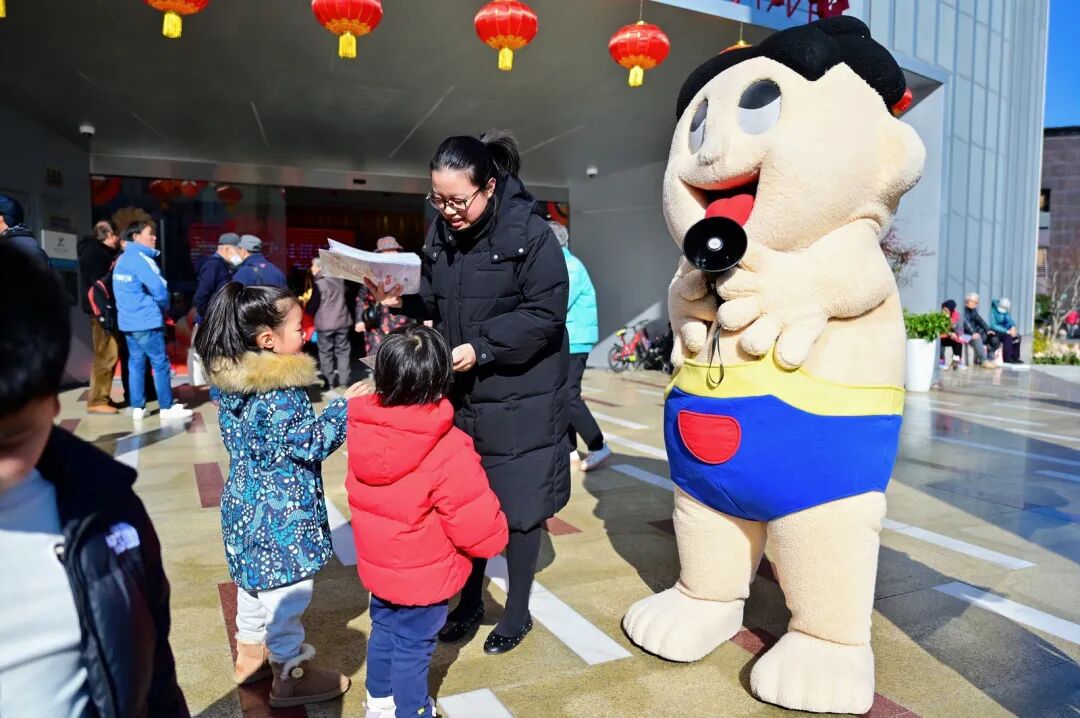 “祝福传递”为幸运居民送上大礼包,旺旺人偶身边簇拥着人群,欢笑声此起彼伏;“成语猜猜乐”考验智慧,“玩偶挑战赛”中孩子们专注夹起小马;“健身体验”则让骑行与甜蜜联动,孩子们奋力蹬车,家长一旁加油,糖丝渐成时,成就感与甜意一同绽放。