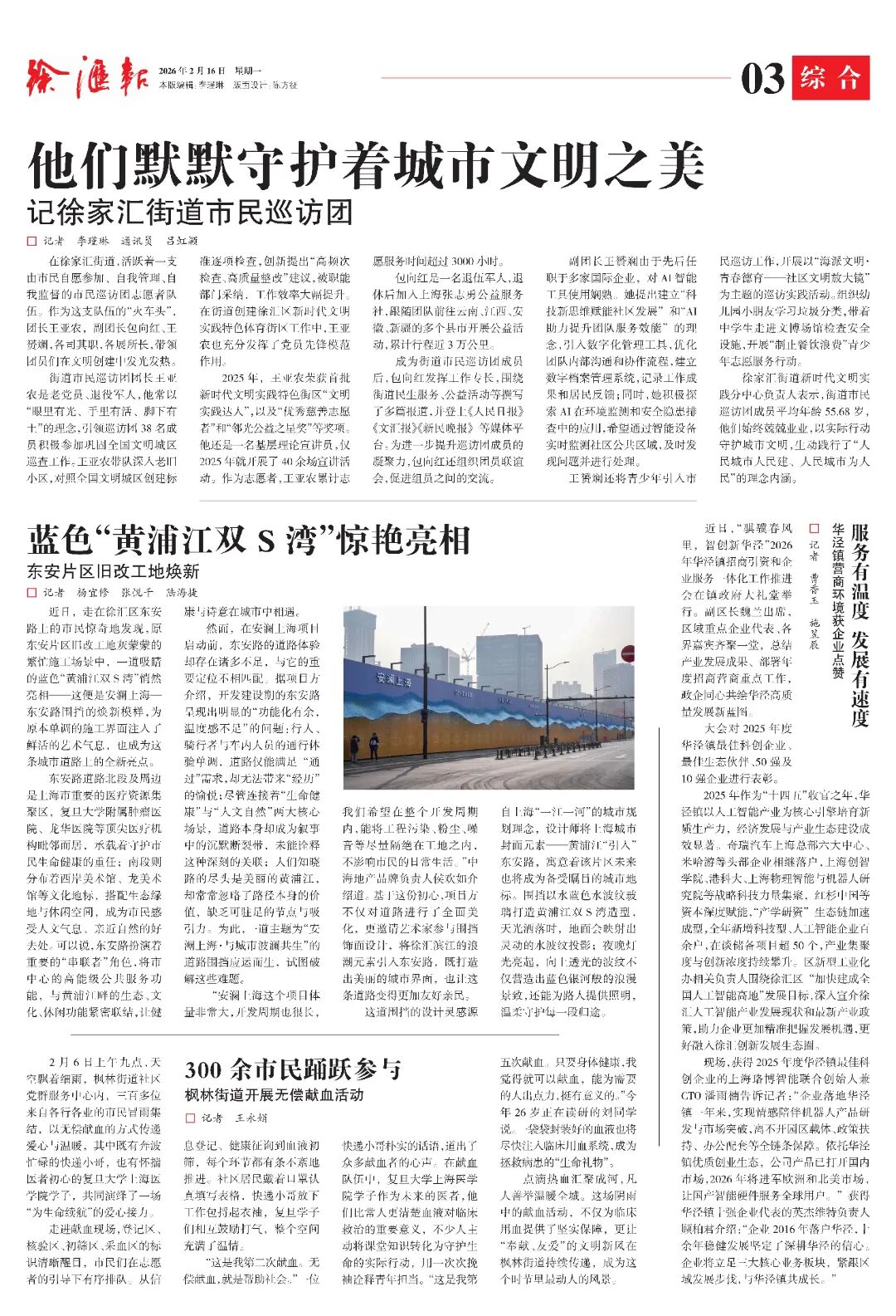蓝色“黄浦江双S湾”悄然亮相,让东安路从单调灰蒙的工地化作流动的江景长廊。这里曾是“功能有余、温度不足”的行走通道,如今水波光影洒落脚下,喷雾消音、遮阳避雨,每一处细节都在诉说对行人的体贴。它是一场用艺术回应生活的城市告白,让赶路变成漫步,将隔绝化为陪伴。安澜上海,安的是根,暖的是心——这便是城市更新最温柔的模样。