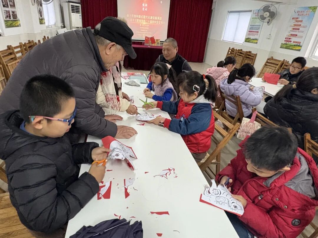 “咔嚓咔嚓”的剪纸声奏响了新春的乐章。在“巧手剪春意”非遗剪纸体验活动中,“社区小先生”们跟随指导,将一张张普通的红纸,经过巧妙的折叠与裁剪,幻化成栩栩如生的窗花。