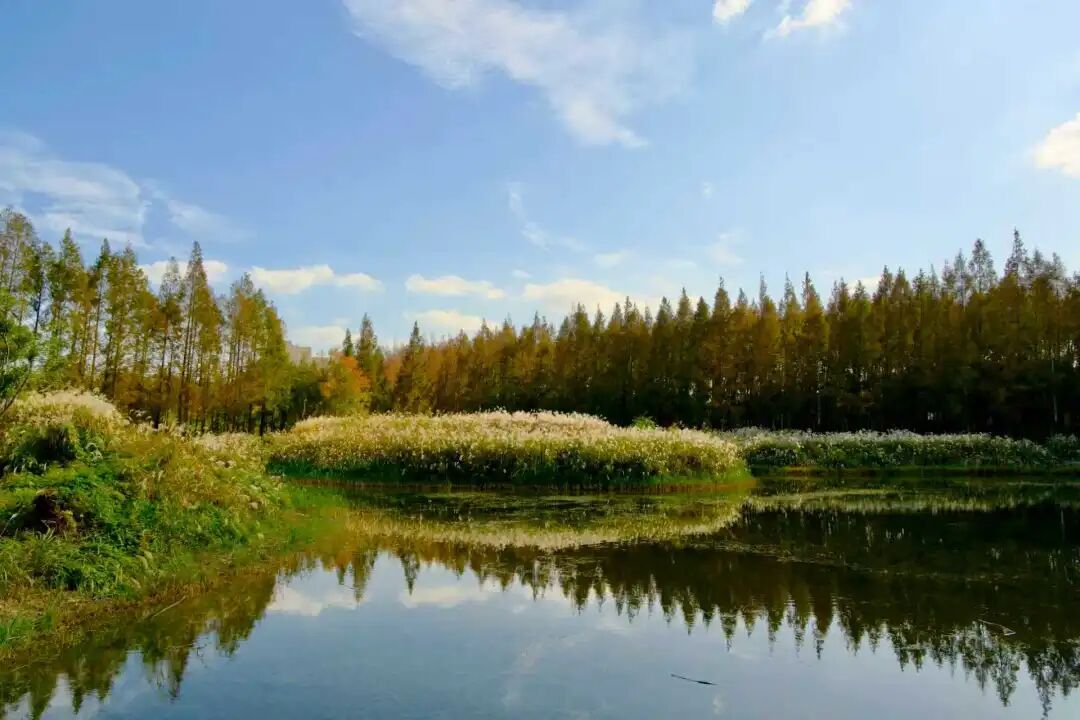 从萧泾古寺出发骑行或驾车前往涵养林,在这片生态秘境中静心休憩,缓解祈福途中的疲惫。林间清风拂面,飞鸟声声,漫步在水杉长廊或芦苇栈道,看阳光洒下斑驳光影,既能沉淀心绪,也能感受自然的治愈力量。