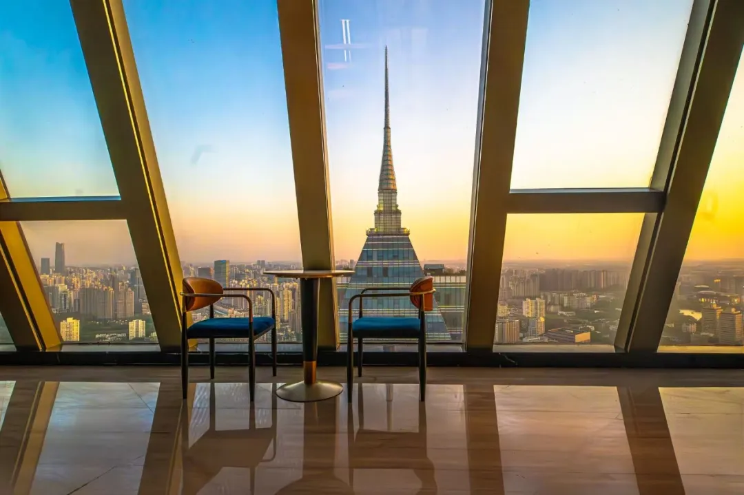 观景平台坐落于环球港双子塔52楼,距离地面约258米,从平台向外望去,远处的高楼大厦鳞次栉比,勾勒出城市的天际线。登上平台上方的观景阁楼,还可以拥有360度的全景视野,欣赏浦西全貌。游客可以在环球之巅,开启一场“高空视觉盛宴”,追一场日落,邂逅绝美景色!