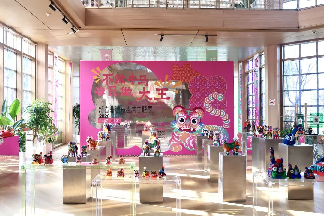丙午马年新春,“不做牛马只做大王”新春非遗布老虎主题展,在徐汇区华泾镇的西岸自然艺术公园树篱学堂举行,不仅为马年新春增添了一份虎气虎威,也展示了中华“虎”文化的千年密码。