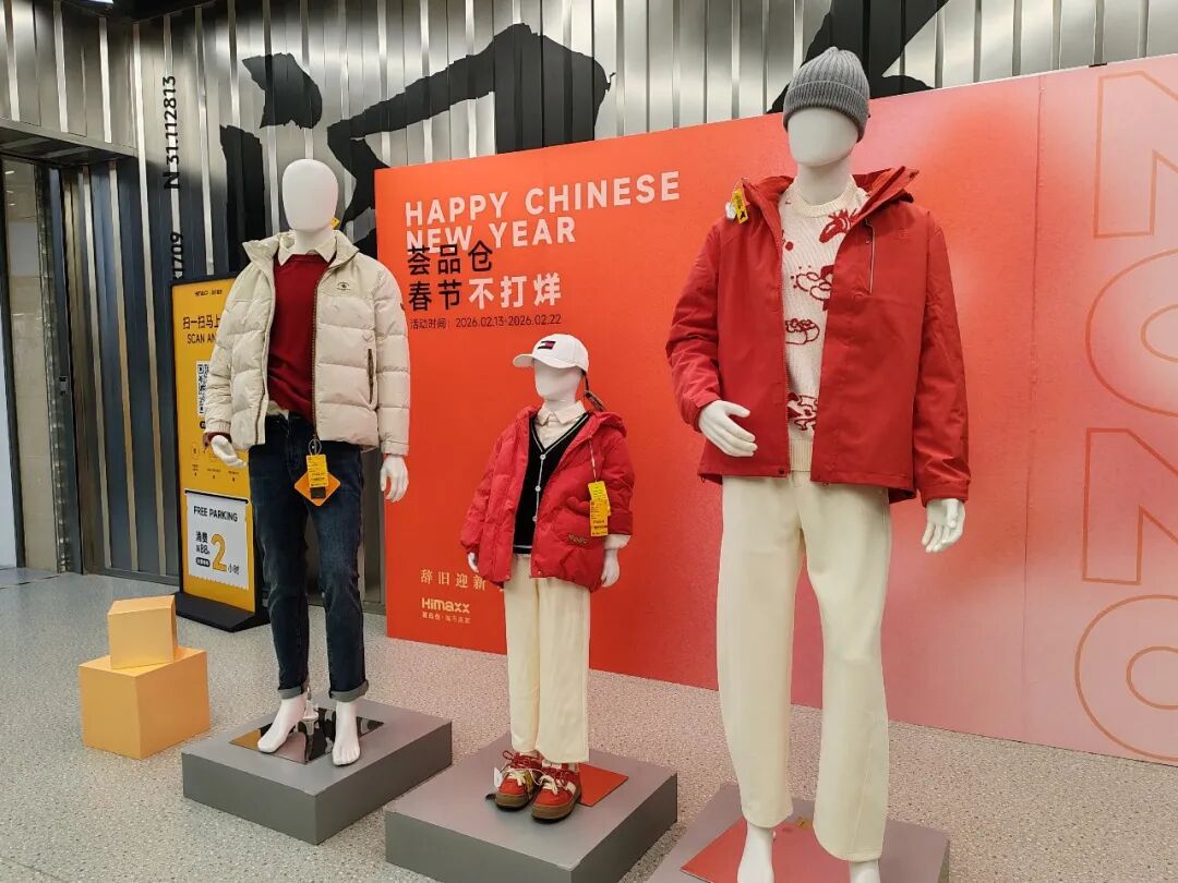 在商场二楼的荟品仓·城市奥莱门店内,处处洋溢着过节的喜庆氛围。运动休闲、服饰鞋包等一应俱全,既有大衣、冲锋衣、羽绒服等保暖外搭,也有卫衣裤、针织衫、毛衣等舒适内搭。
