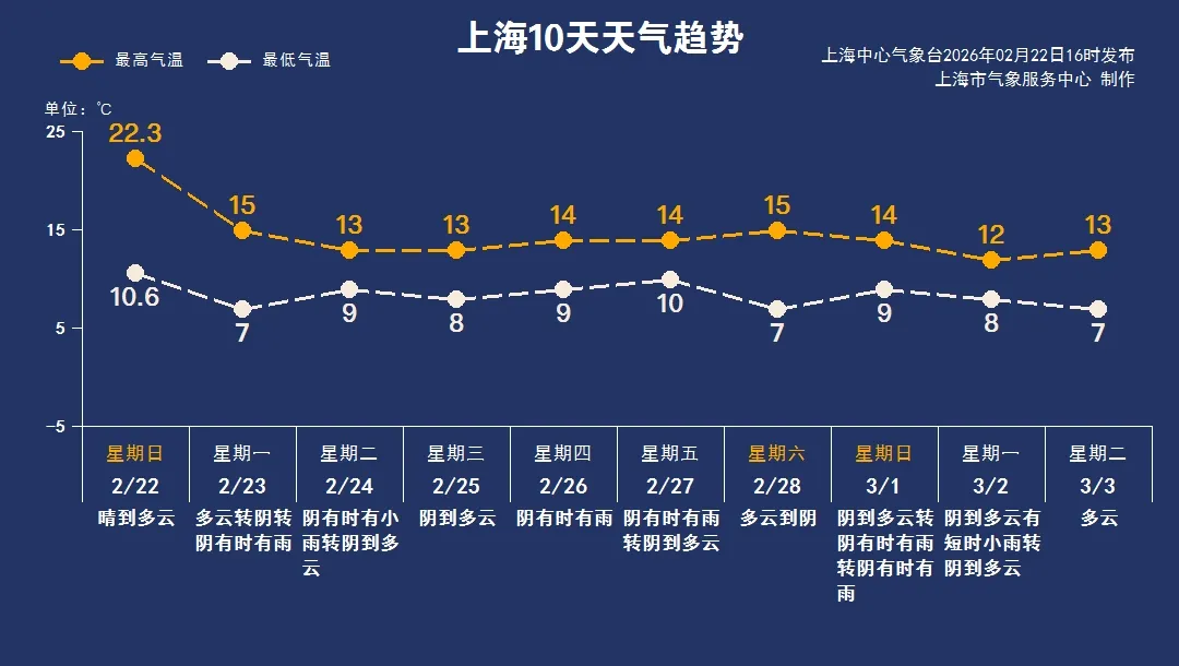 中午以前延续晴暖天气格局,徐家汇站早间气温起步就有10.6℃,最高气温为22.3℃。午后受冷空气影响,风力加大,气温也开始下滑,晚归体感变冷,大家在户外最好穿厚些的防风外套,同时注意用火用电安全。
