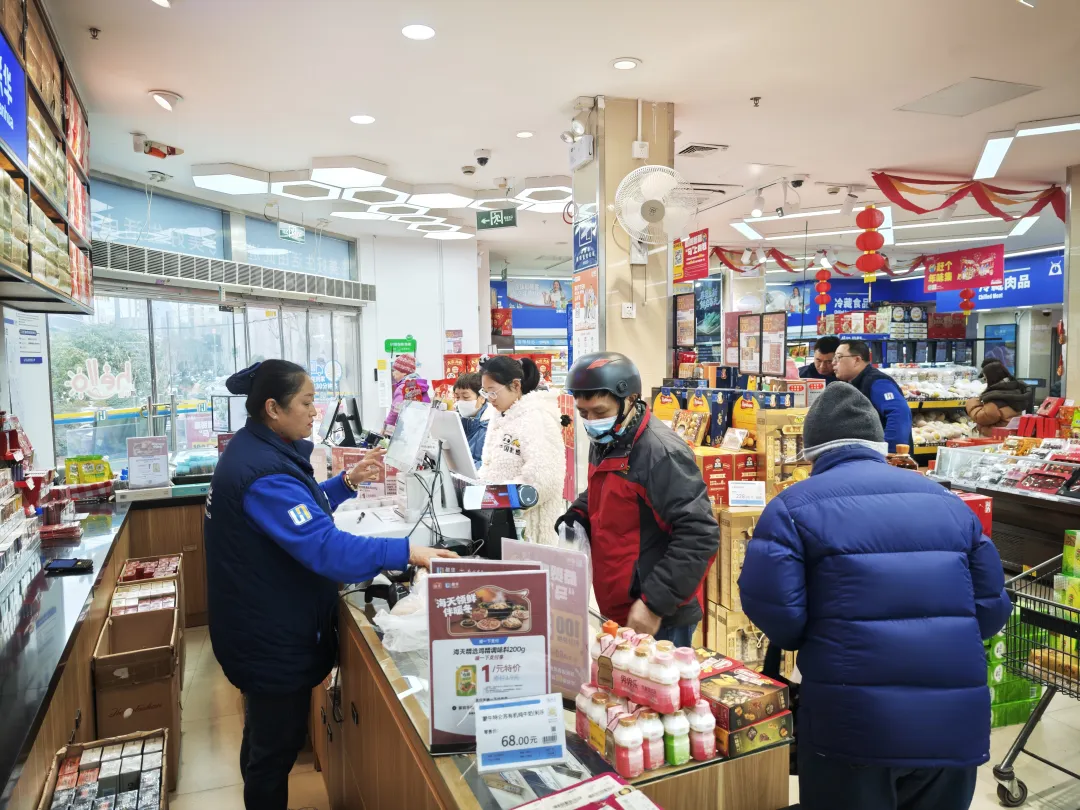 联华股份区域经理蔡军锋介绍,为做好春节期间保供稳价工作,超市提前锁定多个合作基地,确保生鲜食材从田间到货架新鲜直达。针对民生重点商品实行平价供应政策,全力保障市民“菜篮子”充盈、价格平稳。“最近一段时间,我们备货量环比增长15%-20%,开展多频次的民生商品促销,让利于民。”蔡军锋说。