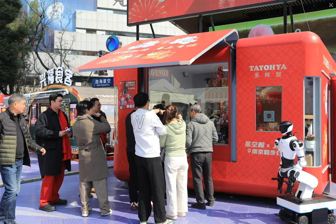 本次合作实现了零售模式从“无人值守”到“人机协作”的升级。作为合作核心载体,“具身智能商业星空舱”是浩海星空打造的城市地标级智能商业终端,集“文化智能商业空间”“品牌可移动O2O智能门店”“IP智能秀场”于一体。该系统搭载自主研发的VLA大模型与人形机器人,支持室外全场景语音交互、端到端任务理解与执行,可实现24小时无人值守运营。与传统自动售货设备不同,“星空舱”突出人与机器人协同运作,机器人不仅完成标准化任务,还能提供品牌宣讲、产品互动与体验服务,赋予零售场景全新交互体验。