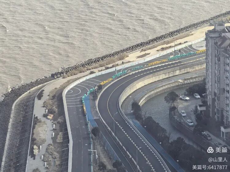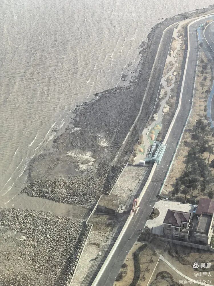 岸基线局部。海浪拍击的痕迹,新建海堤的步道,新建的马路,如果说尽收眼底,不如说是另类邀请——新的宝山版Citywalk已在召唤。