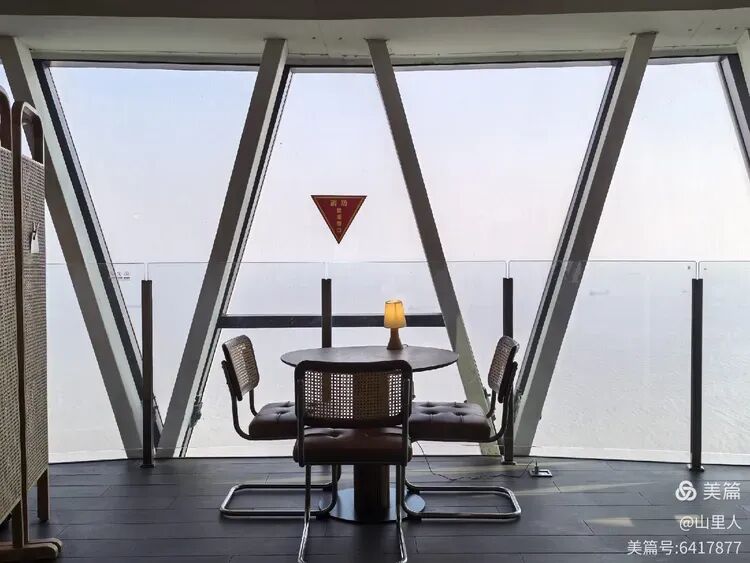 岸基线,马路,港口,码头……定海神针店确实是“观景塔”,来这里喝咖啡可能更在意的是观风景,毕竟上海东北一隅的高空景观点就它独属。