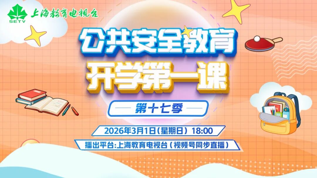 2026年春季学期开学在即,《公共安全教育开学第一课》(第十七季)将于3月1日(星期日)18:00在上海教育电视台播出。