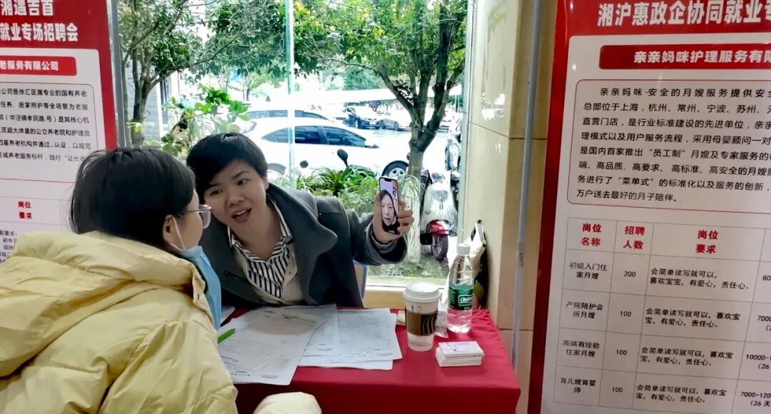 为了让求职者“足不出湘”锁定上海岗位,2月27日,徐汇区人力资源社会保障局在吉首招聘会现场创新增设“现场连线面试”环节。企业面试官远程实时交流、即时评估,求职者当场完成全流程面试。例如,亲亲妈咪通过线上连线,现场成功招录4名母婴护理师。这种“当场面试、当场录用、快速上岗”的高效模式,提升了人岗匹配效率,赢得了企业与求职者的一致好评。